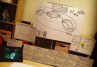 Ale co dál? Měli jsme postavy a sami nevěděli jak pokračovat. Potřebovali jsme scénář a neměli nikoho, kdo by měl zkušenosti a čas se nám věnovat. Tu chvíli si přesně pamatuji – seděla, nebo spíš ležela, jsem v čajovně s nohama skoro za hlavou a těch pár lidí, kteří tam byli se mnou to na mě prostě hodili. I přes můj počáteční odpor a protesty jsem nakonec kývla s pocitem, že to bude hrůza a nenapíšu ani list. Ok… Ještě ten večer jsem napsala dvanáct stran a další den dalších deset s tím, že mají, co chtěli a tím končím.