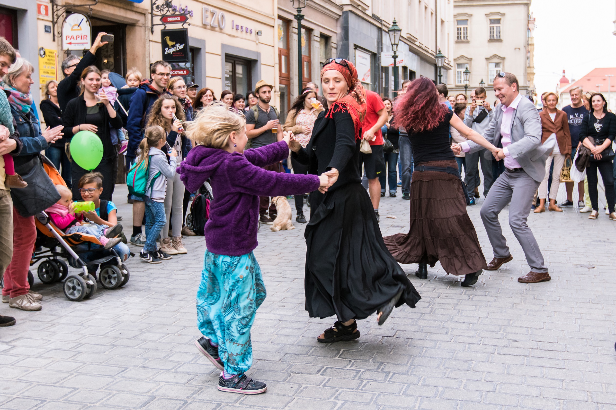 aktivní zapojení do pouliční performance, zakončené společným pivem Raven.