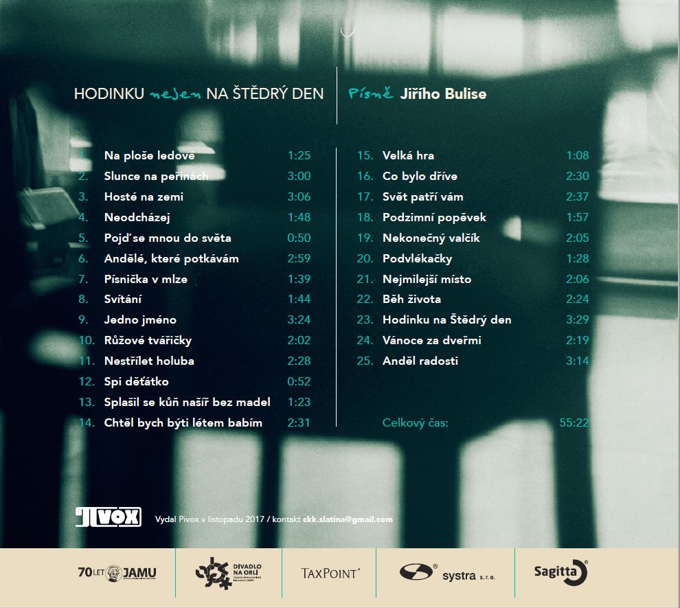 Věříme, že pomocí CD uděláme radost těm, kdo chodili na naše představení i mnoha dalším, kteří mají hudbu Jiřího Bulise rádi.