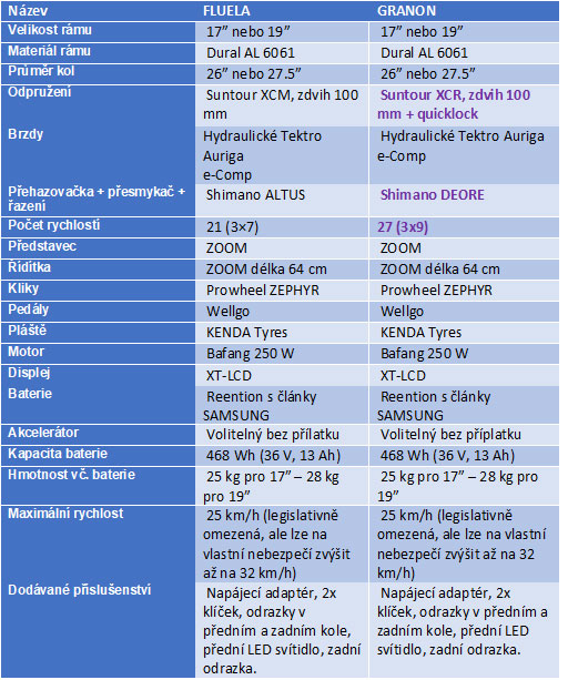 Na výběr jsou dvě varianty, které se liší hlavně ve výbavě. FLUELA si zvolí ti, kteří převážně jezdí po cyklostezkách a nezpevněných komunikacích. Varianta GRANON je určena pro vyznavače jízdy ze svahů a celkově náročnějšího terénu (tím nemyslíme extrémní downhill).