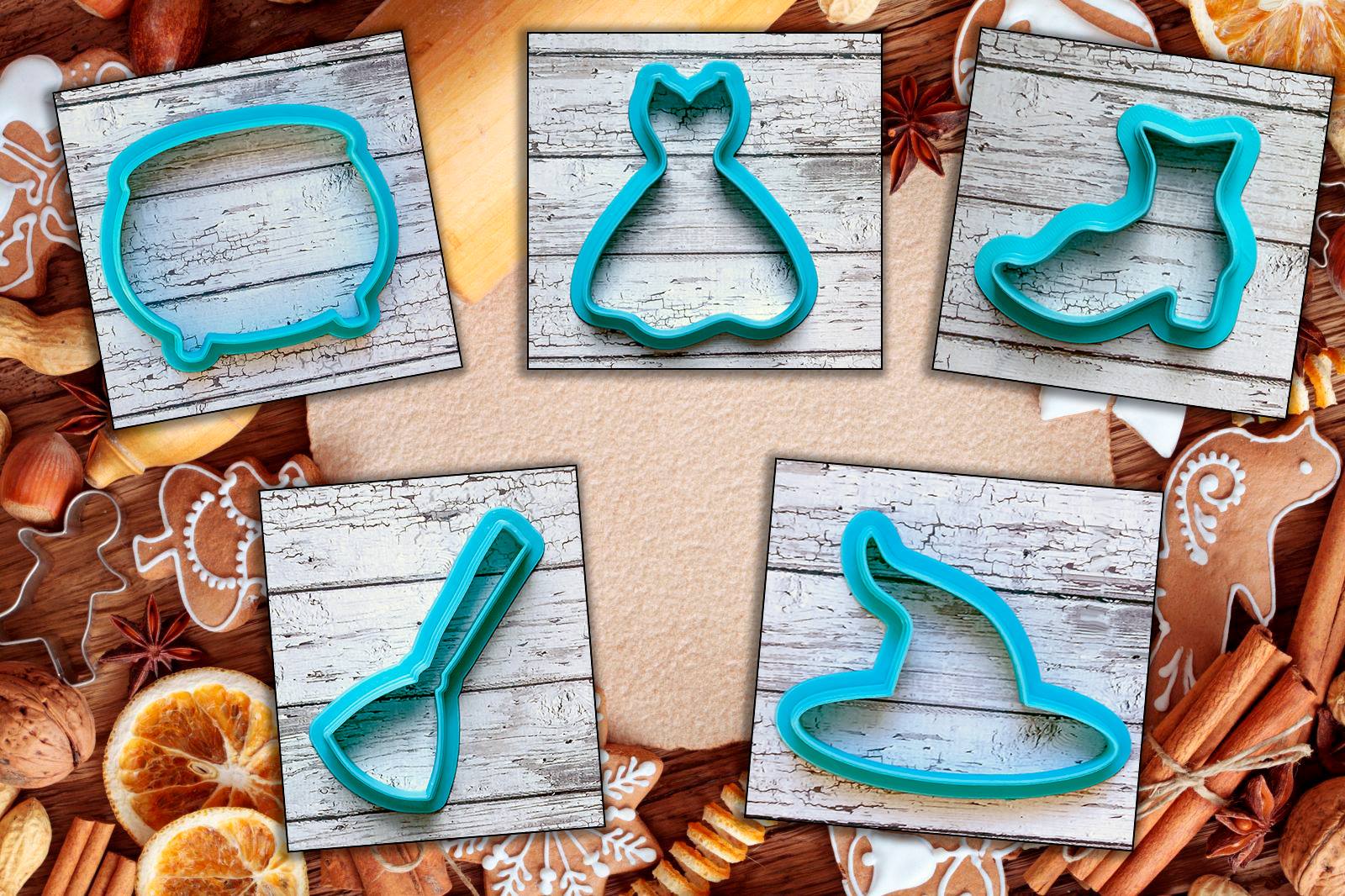Vykrajovátka o velikosti 7,5 cm, 10 cm. Kotel, čaroděj. klobouk, šaty, boty a koště.  (foto v popisu)