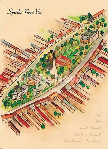 Kolekcia maľovaných  pohľadníc s dominantami mesta Spišská Nová Ves