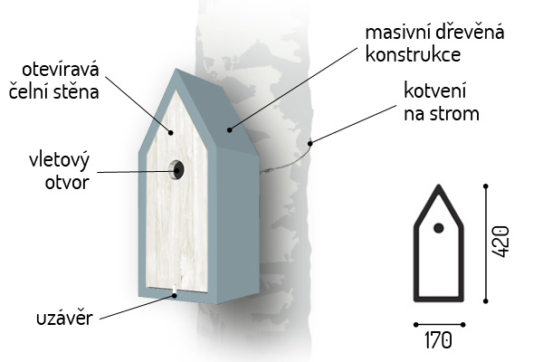 Budka je plně funkční, vyrobená podle doporučení České společnosti ornitologické: