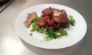 Výpečky / XXL řízek a zelný salátek / Játra na červeném víně s rukolou
