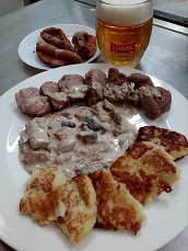 Dejte si u nás vydatné jídlo: vepřové koleno (1ks) nebo žebra (0,75 kg) + 4 piva Dudák 11°+ sadu 3 našich originálních pohlednic + poděkování na našem FB profilu.