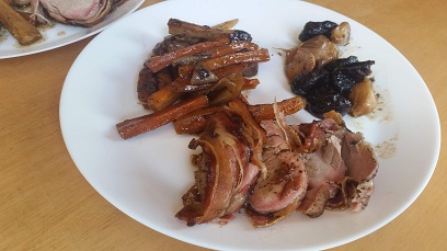 Panenka, houbové ragú a domácí opečené škubánky + houbové řízečky / Hit léta - Panenka ve slanině, kořenová zelenina, švestky a česnek, se skořicí a badyánem