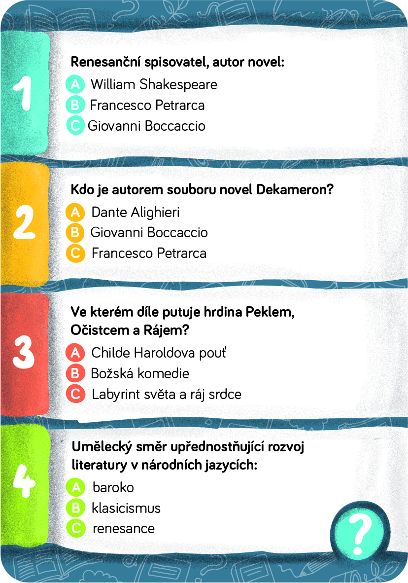 Ve třetím okruhu s jedná o obsah díla. Znáte například následující odpovědi?