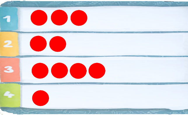 V první hře si hráči za správné odpovědi umisťují žetonky na svou herní tabulku.
