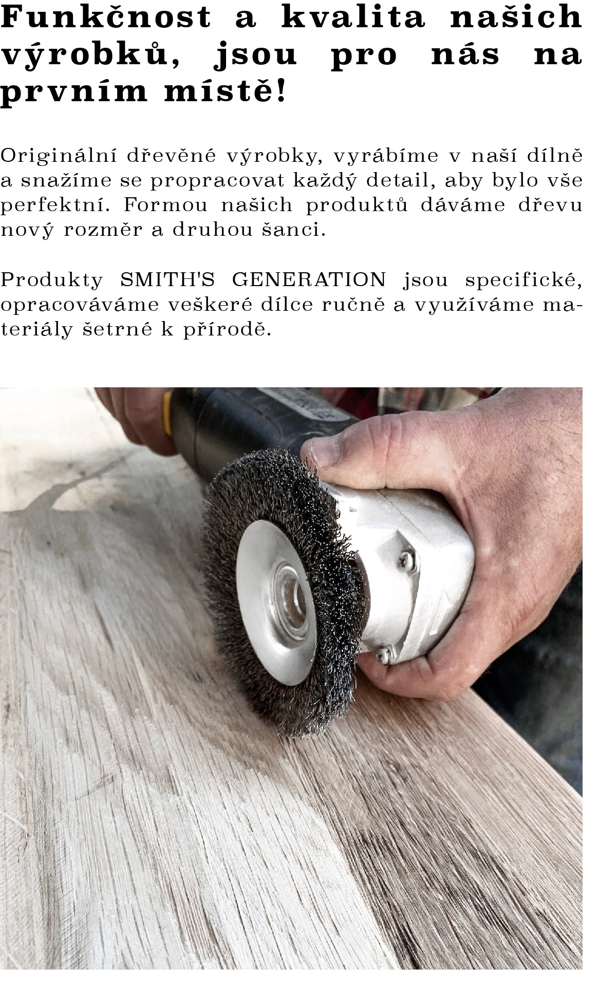Materiál: Drásané dubové dřevo s kovovými prvky