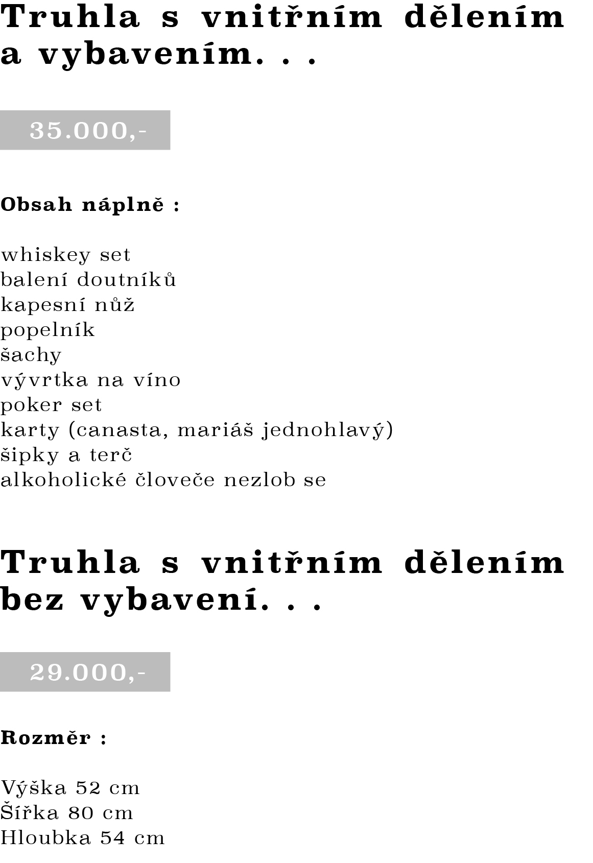 Truhla s vnitřním dělením a vybavením, dodání do čtvrt roku