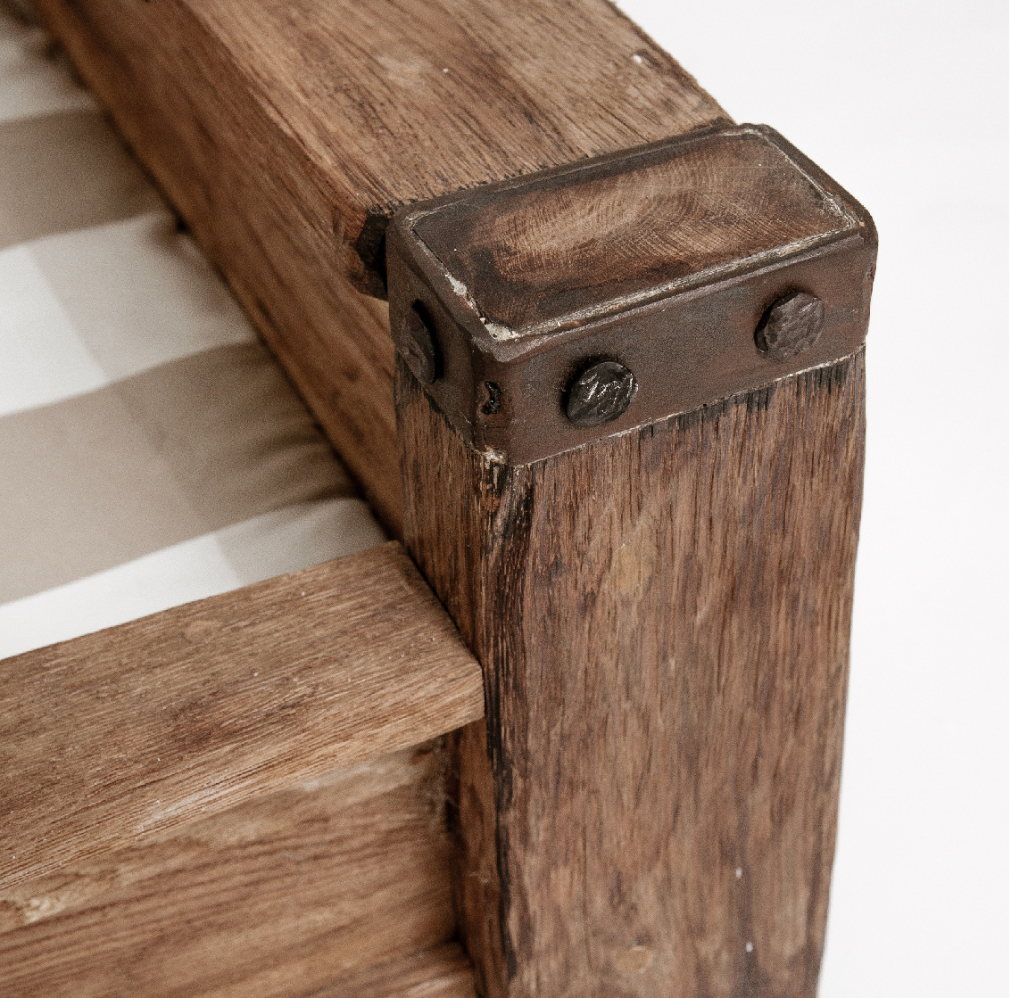 Materiál: Drásané dubové dřevo s kovovými prvky.