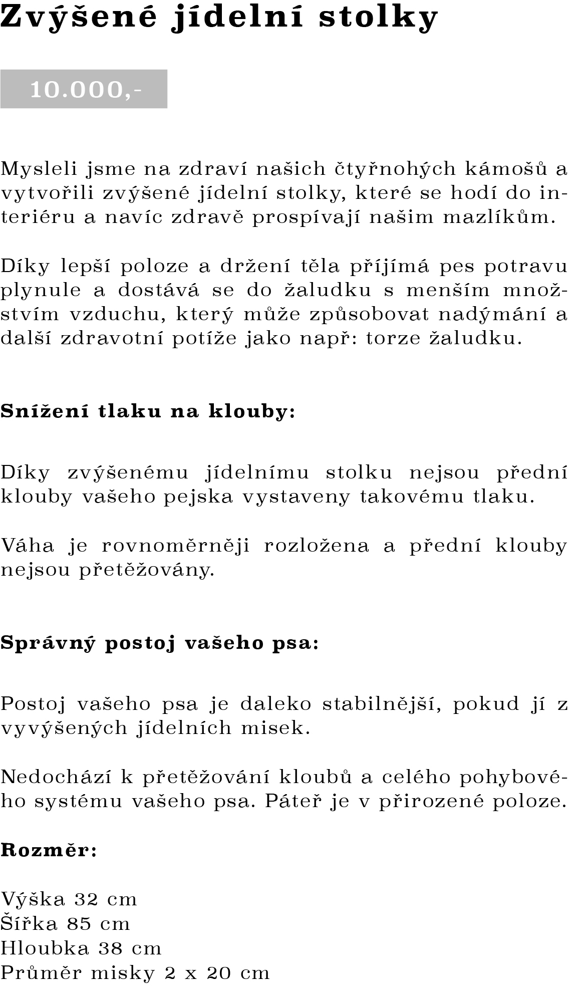 Mysleli jsme na zdraví našich čtyřnohých kámošů a vytvořili zvýšené jídelní stolky, které se hodí do interiéru a navíc zdravě prospívají našim mazlíkům.
