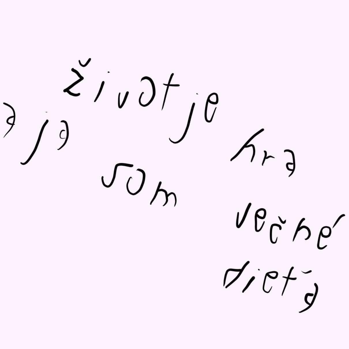 Škrabopisky, ako ich nazývam,spájajú okrem týchto myšlienok i font, ktorý som vytvorila ako vyobrazenie nedokonalosti či dokonca strachu a bolesti, z ktorého prekonania, vznikajú krásne veci. Chyby nie sú chybami a snaha o dosiahnutie dokonalosti je klišé, nebezpečný strašiak v našich životoch, ktorého jediná úloha je brzdiť nás v našich snoch.