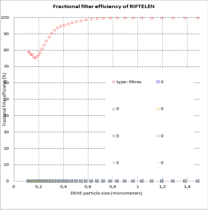 Zde je graf filtrační účinnosti membrány RIFTELEN změřený na Technické univerzitě v Liberci :