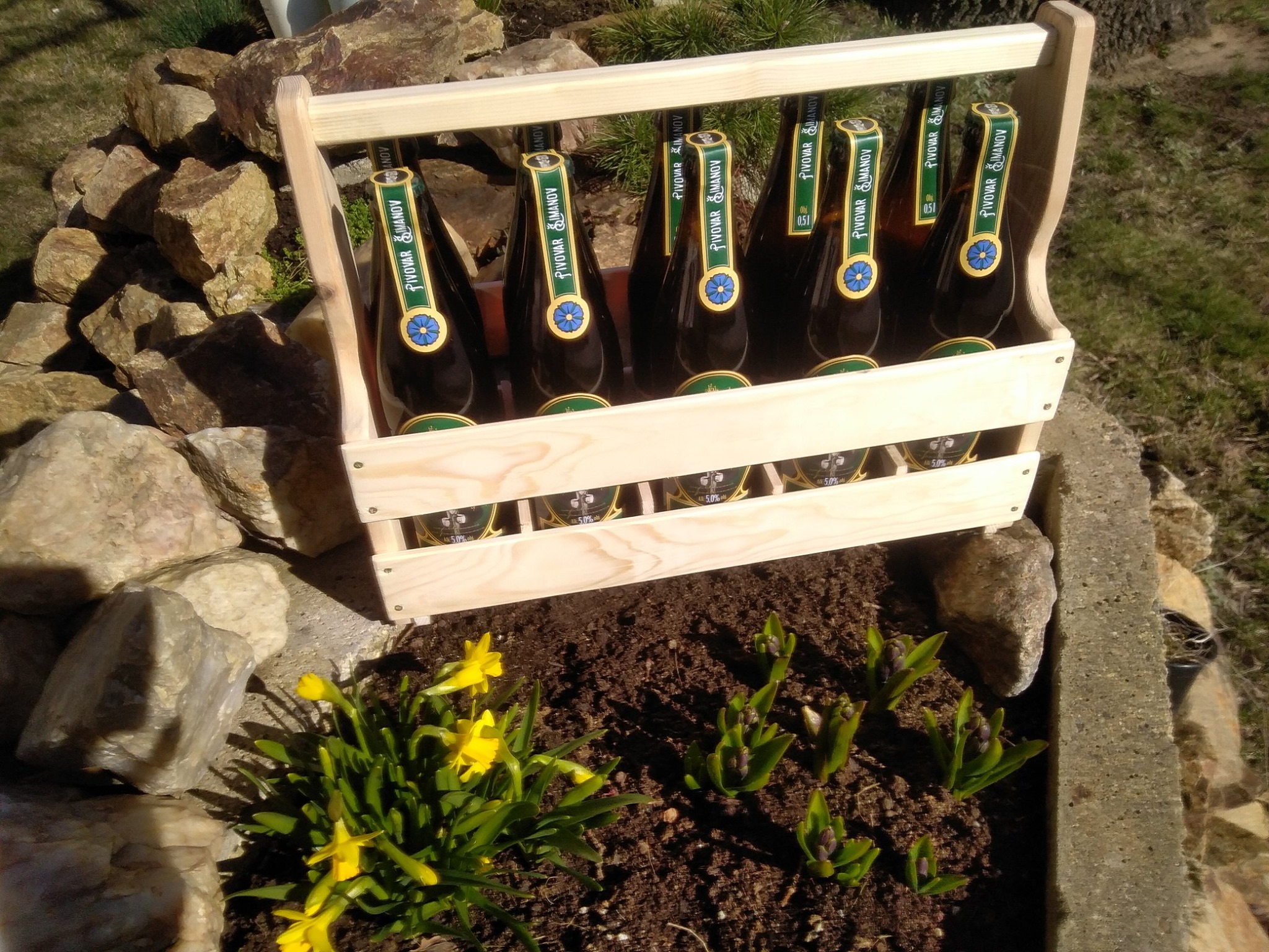 Naše výborné chlorellové pivo pro vás máme navíc ve speciálních dárkových bedýnkách, při jejichž výrobě používáme dřevo z vlastní pily. Tento provoz je čistě ekologický, napájený energií z vodní elektrárny, případně fotovoltaických panelů. Dárková bedýnka je multifunkční, jakmile uhasíte žízeň, stačí vyndat mřížku a máte skvělou bedýnku třeba na nářadí.