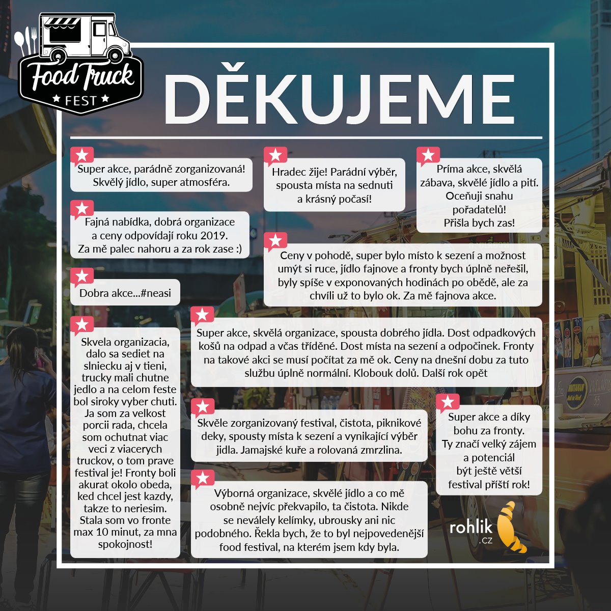 Připojte se k naší události na Facebooku a sledujte novinky. Postupně budeme uveřejňovat jednotlivé Food trucky a připravíme si pro vás i nějakou soutěž.
