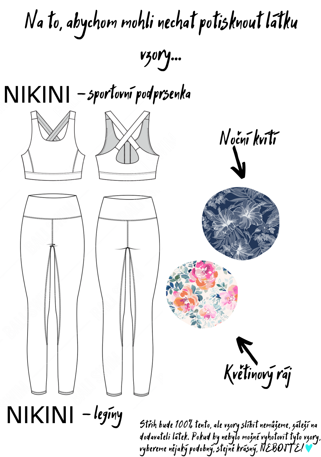 Po ušití NIKIN Vám bude zaslán odkaz, kde si budete moci vybrat velikost a barvu Vašeho setu.