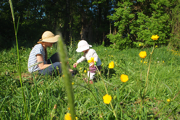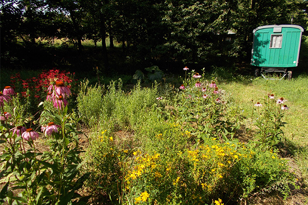 Základem vznikajících terapeutických zahrad se stal dar pozemku, ke kterému se Zlatobýlu podařilo postupně dokoupit navazující části, a obhospodařuje tak v současnosti tři hektary. O zahrady, které tvoří dvě louky s částí původního sadu a smíšený háj na jejich předělu, se snažíme starat ve smyslu biodynamického zahradničení. S respektem k tomu, co v zahradách už je, v chápání nám svěřeného prostoru jako celku. Naše hlavní zahradnice Hanka při plánování dalších prací říká, že se má v zahradách potkat natura s kulturou. Přetváříme je tedy postupně, do budoucího konceptu zapojujeme už existující zákoutí a vzrostlé stromy. Náš způsob zahradničení umožňuje podpořit diverzitu v krajině a především poskytuje útočiště mnoha jeho obyvatelům, od včel, ježků a slepýšů až po člověka, který může rozjímat v prosluněném lese nebo přivonět k bylinným záhonům v zahradě. Zároveň je otevřen dobrovolníkům, dětem i kolemjdoucím. Klademe důraz na terapeutický aspekt práce se zemí a času v přírodě. V budoucnu by Zlatobýl chtěl být schopný poskytnout možnost terapeutického pobytu různým cílovým skupinám, se zázemím v „Dědkově vile“, a chráněná pracovní místa zahradníkům s handicapem.