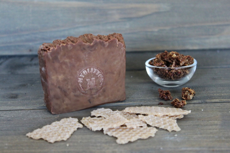 Mýdlo velmi příjemně voní po Propolisu a získalo tmavě hnědou barvu díky této látce.