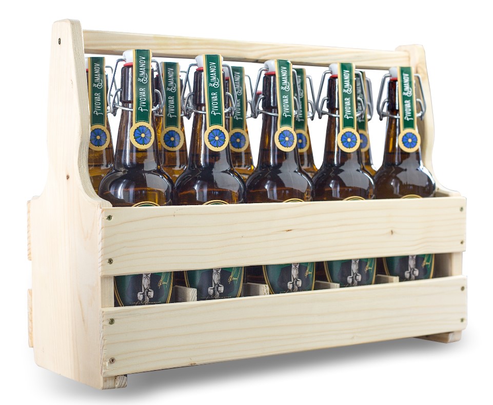 Naše výborné chlorellové pivo pro vás máme navíc ve speciálních dárkových bedýnkách, při jejichž výrobě používáme dřevo z vlastní pily. Tento provoz je čistě ekologický, napájený energií z vodní elektrárny, případně fotovoltaických panelů. Dárková bedýnka je multifunkční, jakmile uhasíte žízeň, stačí vyndat mřížku a máte skvělou bedýnku třeba na nářadí.