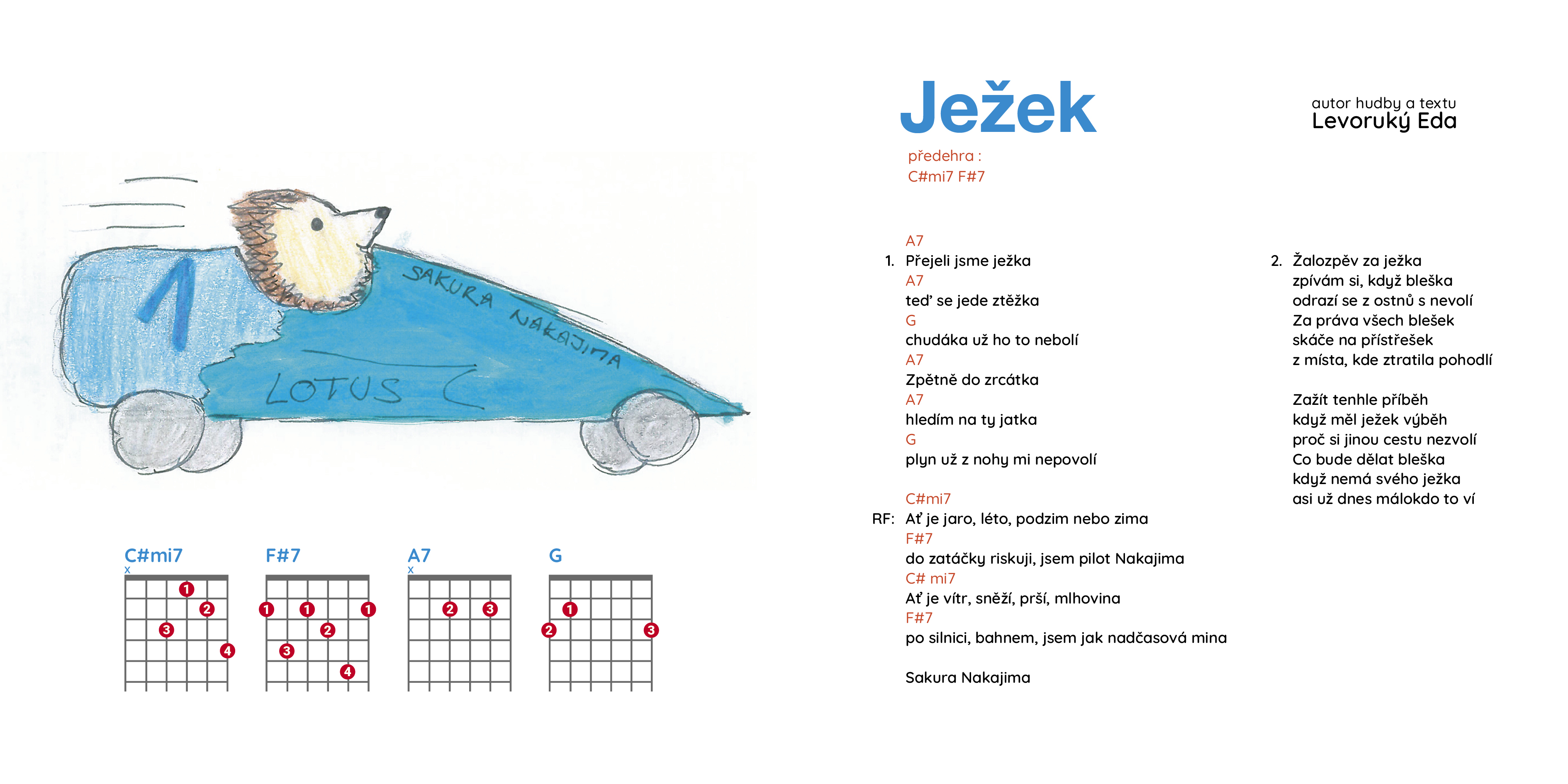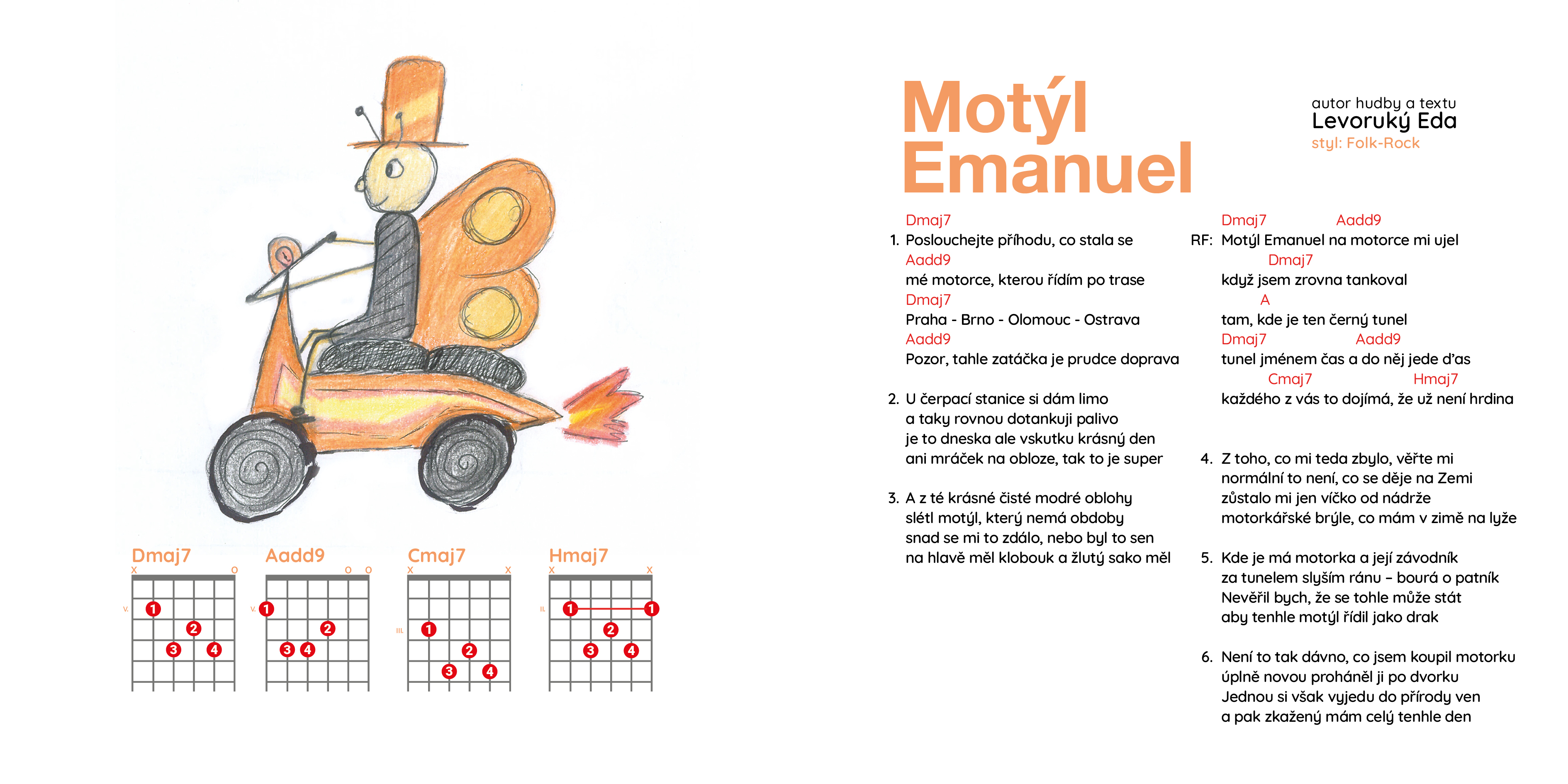 Leporelo se bude jmenovat Tluče bubeníček a bude obsahovat 13 ilustrací + 13 autorských textů písní + akordy na kytaru ke každé písničce + vložené CD s písničkami, aby si děti a rodiče mohli skladby jednoduše zahrát a zazpívat. Obrázky k písním ilustrovala Anežka Bartůšková.