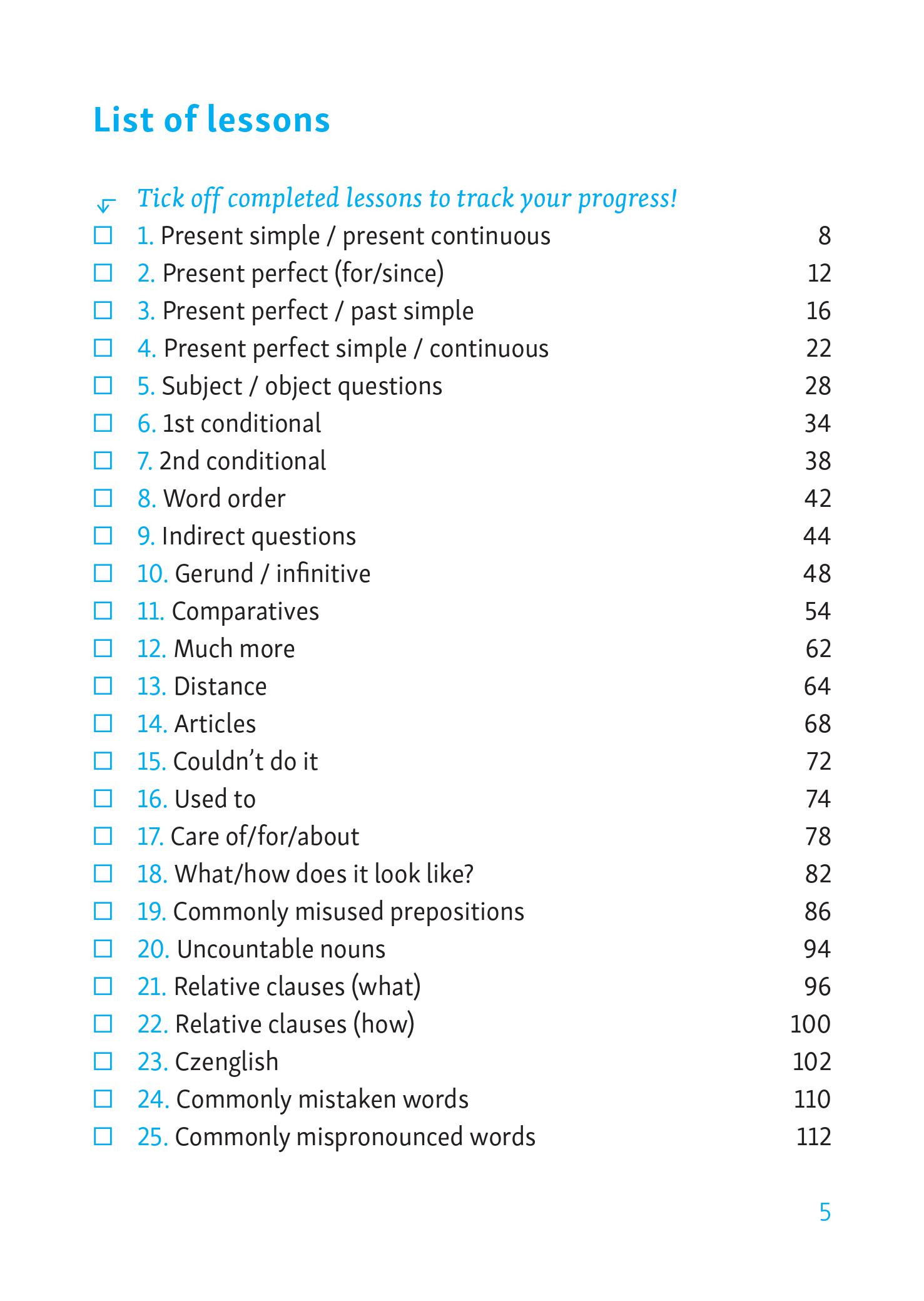 25 Days from Czenglish to English is a daily English grammar practice for busy Czech students of English who don't like and don't have time to study grammar. This book is not made for all international students of English, but specifically for Czech people.