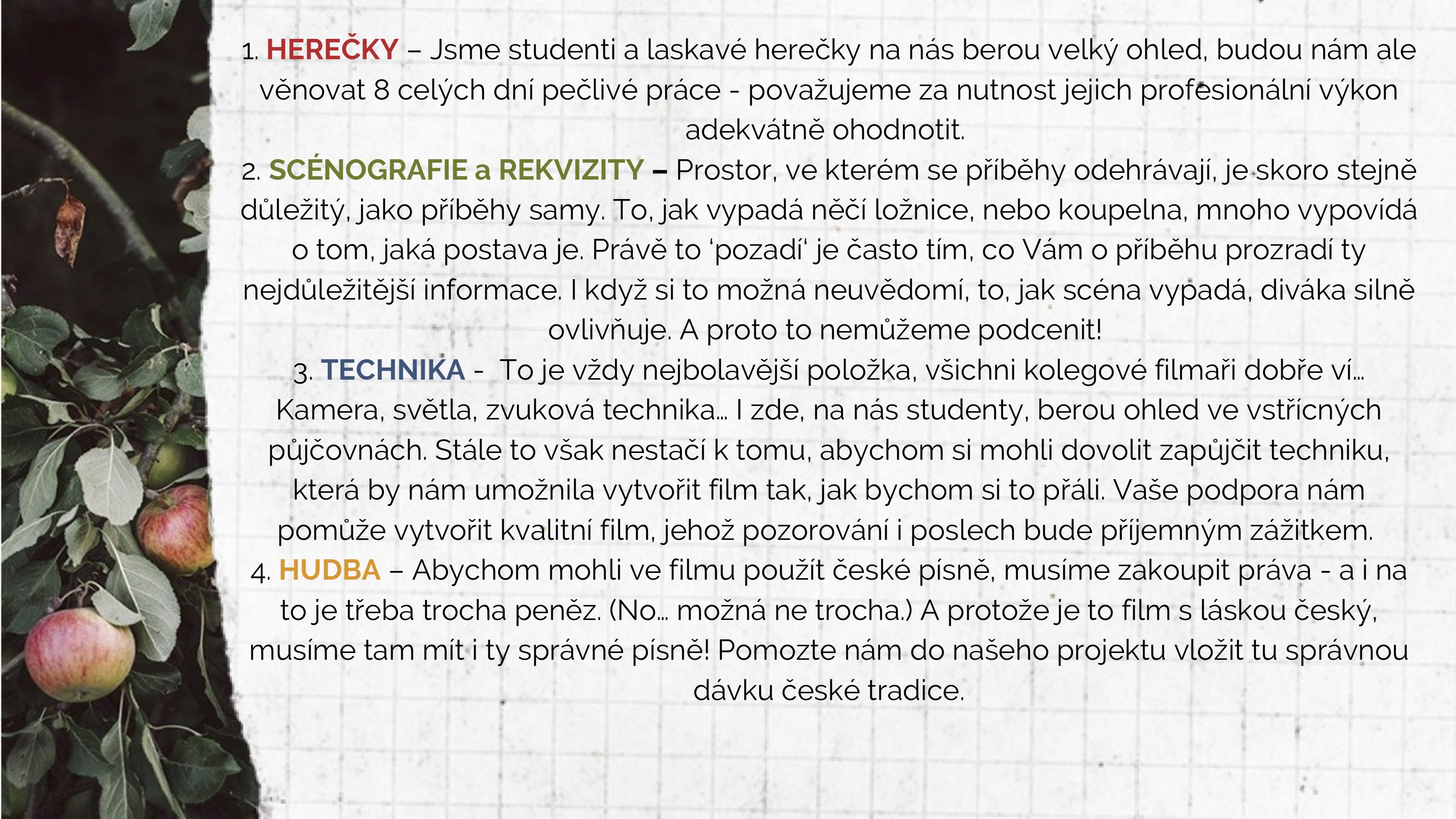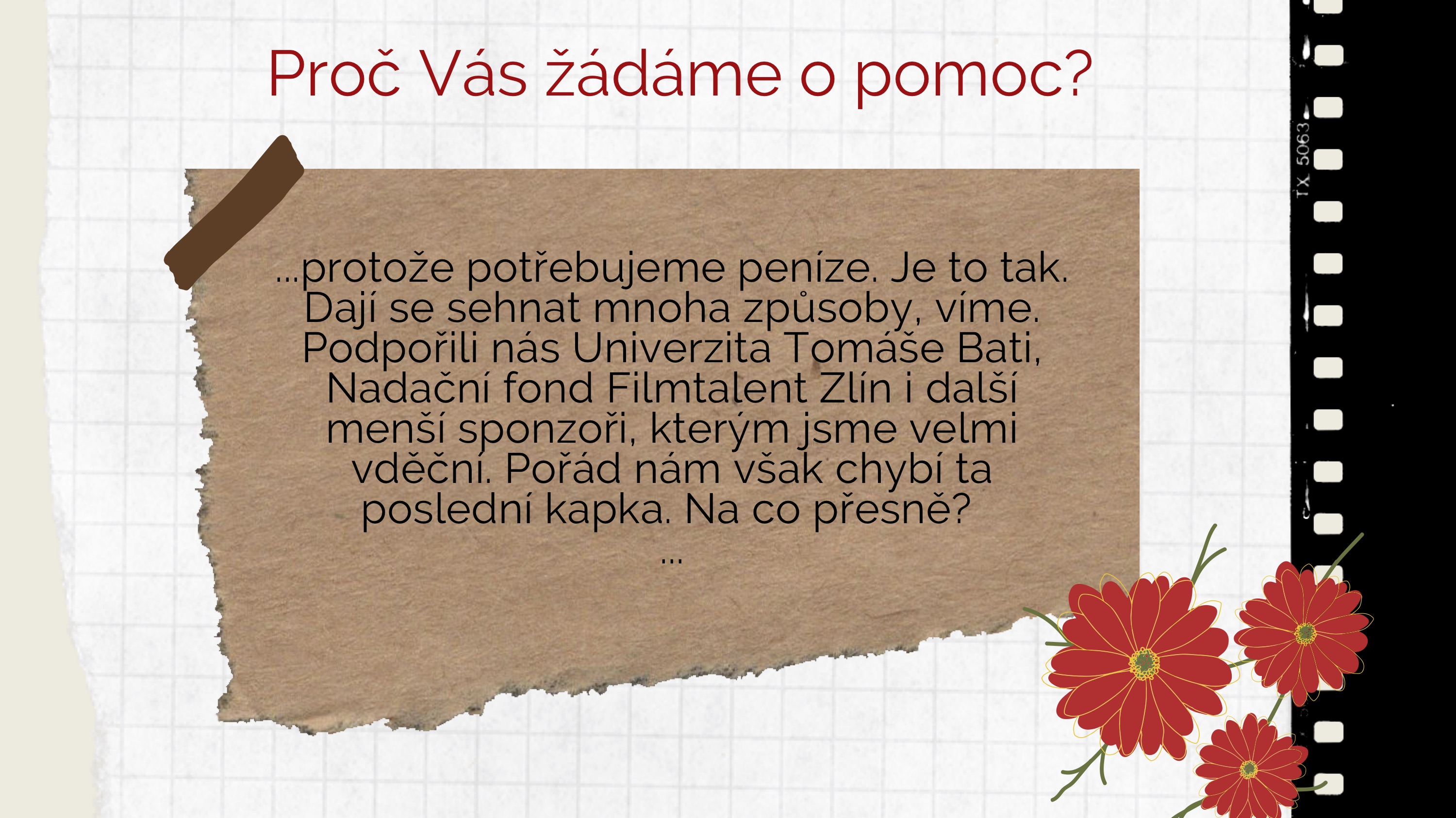Dobrý pocit a poděkování štábu za podporu mladé kinematografie. Děkujeme za každý příspěvěk, každému z Vás pošleme