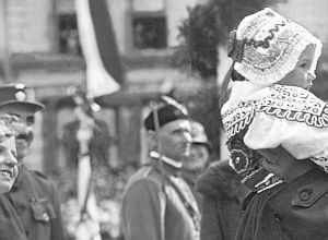 „Zrovna o ní i o celé události je dostupné velké množství informací, které dovolují dohledat jednotlivé aktéry. Přesné barevné schéma kroje je téměř vždy, a bylo i tentokrát, otázkou na odborníka. Sokolská uniforma, stejně jako ta příslušníka hradní stráže, je kombinací jednotlivých prvků výstroje poměrně signifikantní i v černobílé variantě a obě dvě by mohly samy pomoci k přesnější časové dataci fotografie, kdyby bylo zapotřebí. Asi největší problém představovala lokalizace budovy v pozadí, když podle dostupných pramenů by mělo jít o Hotel Veliš na žďárském Náměstí Republiky,“ vysvětluje editor knihy, Vojtěch Klíma.