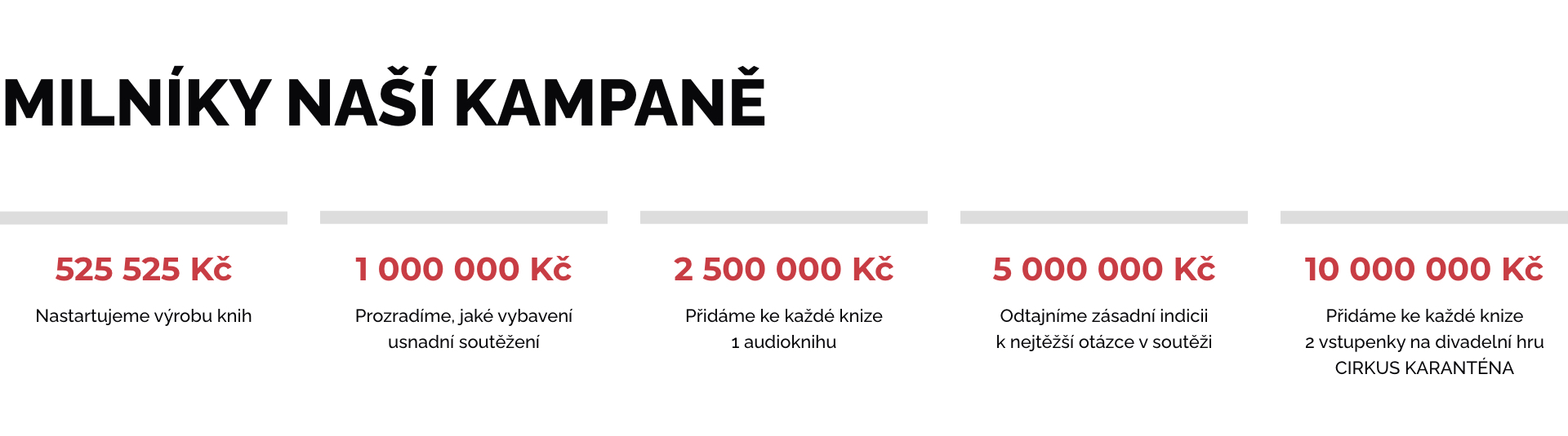A pak to přišlo. Jako blesk z čistého nebe projel Mikem nápad a hra o 1 000 000 Kč založená na principu dovednostní soutěže byla na světě. Kouzlo toho všeho spočívá v tom, že kdo nejrychleji a správně zodpoví 23 otázek, vyhraje milion korun českých. Jedinou podmínkou, aby byla výhra vyplacená, je prodej 25 000 výtisků knihy. Tištěná kniha se prodává pouze na internetu přes vlastní e-shop www.cirkus-karantena.cz a zde na HITHITu v rámci této kampaně, jinak nikde. Mezi celkový počet prodaných knih se započítávají i zdejší odměny a vše je dozorováno notářem. Notář má rovněž zapečetěnou obálku se správnými odpověďmi a popsanými cestami, jak se dají z knihy odpovědi vyčíst. Samozřejmostí je pro něj neomezený přístup a kontrola prodejních informací. Na našich profilech na sociálních sítích budeme průběžně vyhlašovat milníky v počtu prodaných knih, a to vždy po 1 000 kusech. Tím je zaručeno, že každý čtenář bude mít aktuální informace o tom, v jaké fázi se soutěž momentálně nachází.