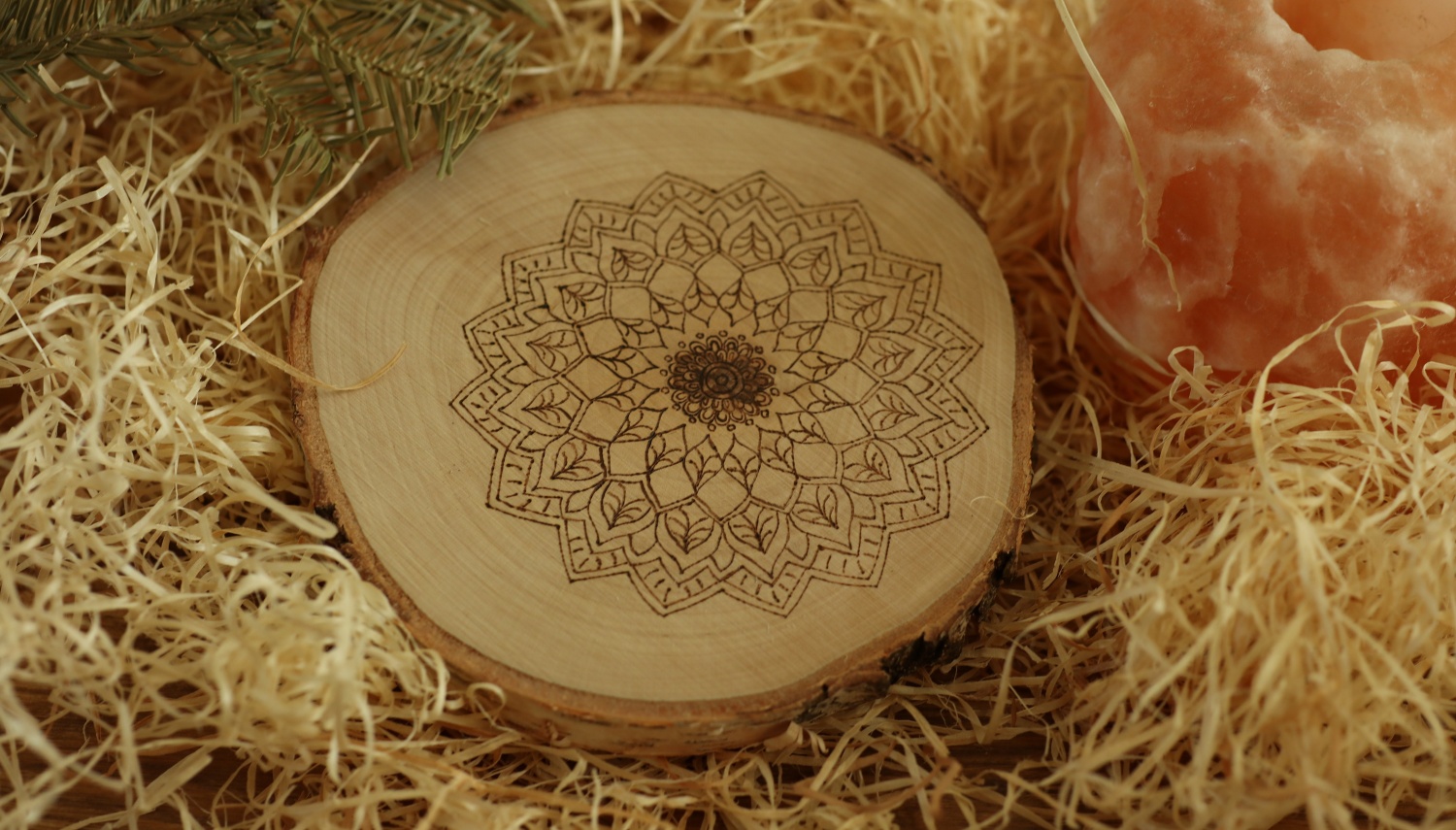 vypalovaná podložka s mandalou (odměna kniha + ručně vypalovaná podložka s mandalou)