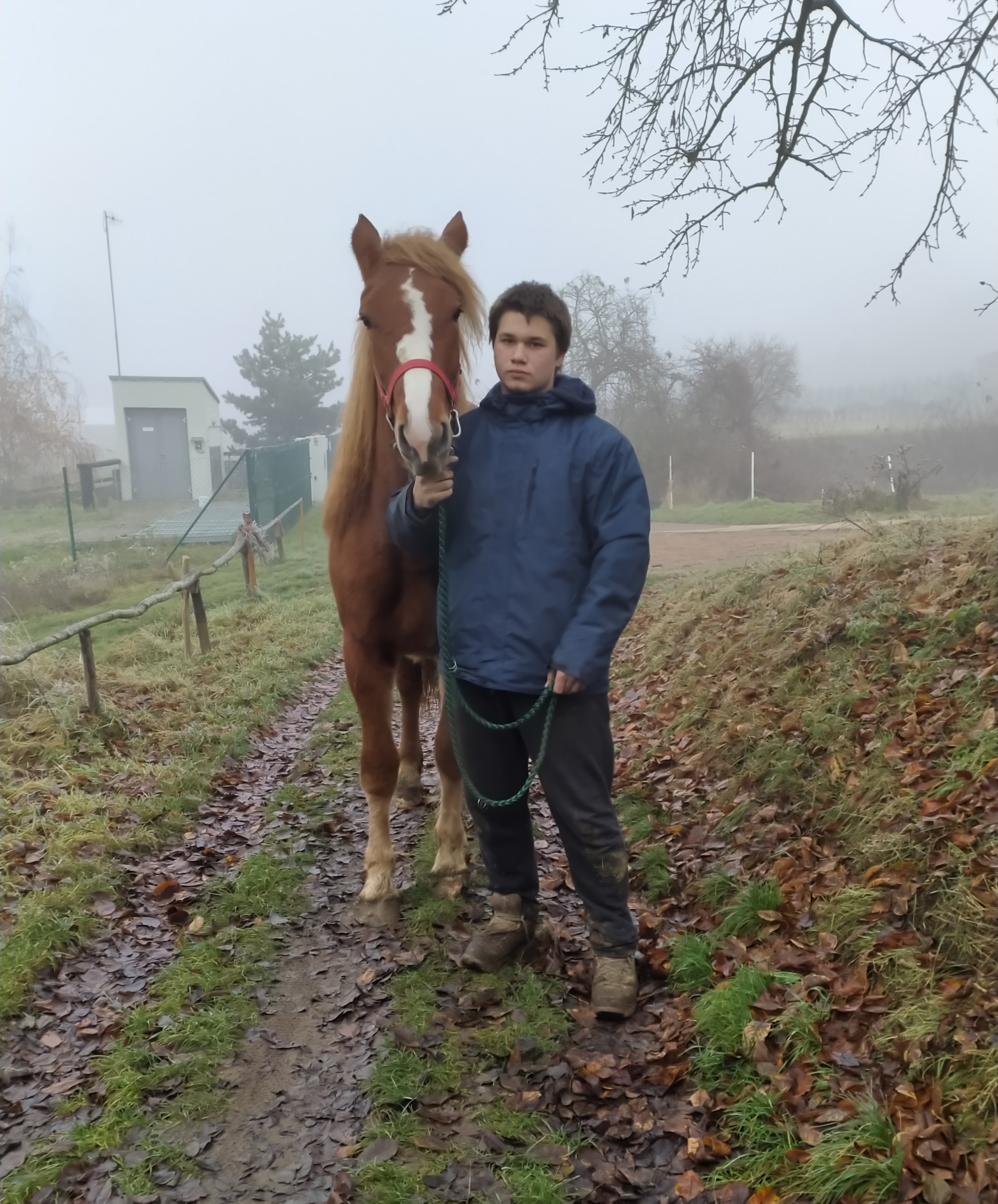 Synovi jsme pořídili koně. Je mu sedmnáct, o zvířata se stará stejně se zájmem jako já. Jeho cílem je koně naučit kosit trávu, sbírat seno, orat, vláčet, no prostě vše, co tažný kůň zvládne. A našim cílem je našeho syna podporovat v jeho lásce k venkovskému životu.