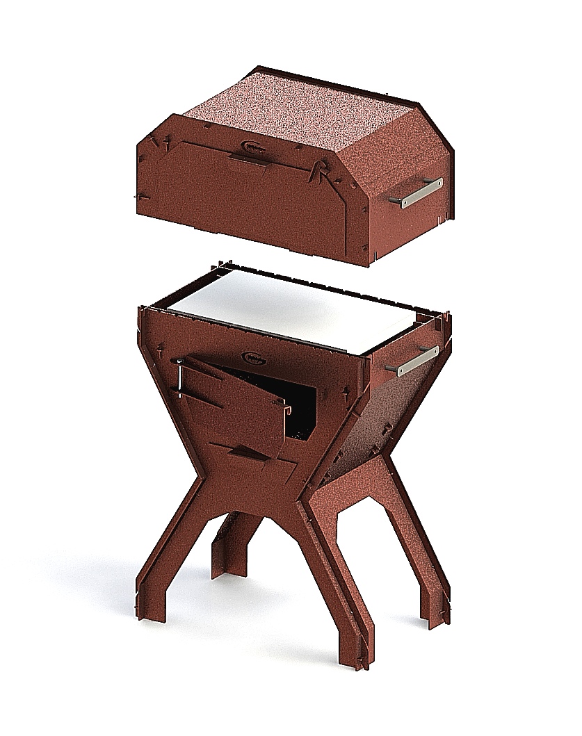 PuzzleGrill V2....skládačka univerzálního grilu pro přímé i nepřímé grilování a rožnění. Stejně tak jako u verze V1 je možno v budoucnu rozšířit o zadní topeniště a grilovací jehlu. Bonusem této verze je možnost rozšíření o zahradní pec na dřevo. Tak jako u základního těla grilu, i zde se jedná o skládačku, kterou si doma složíte dle přiloženého videonávodu.