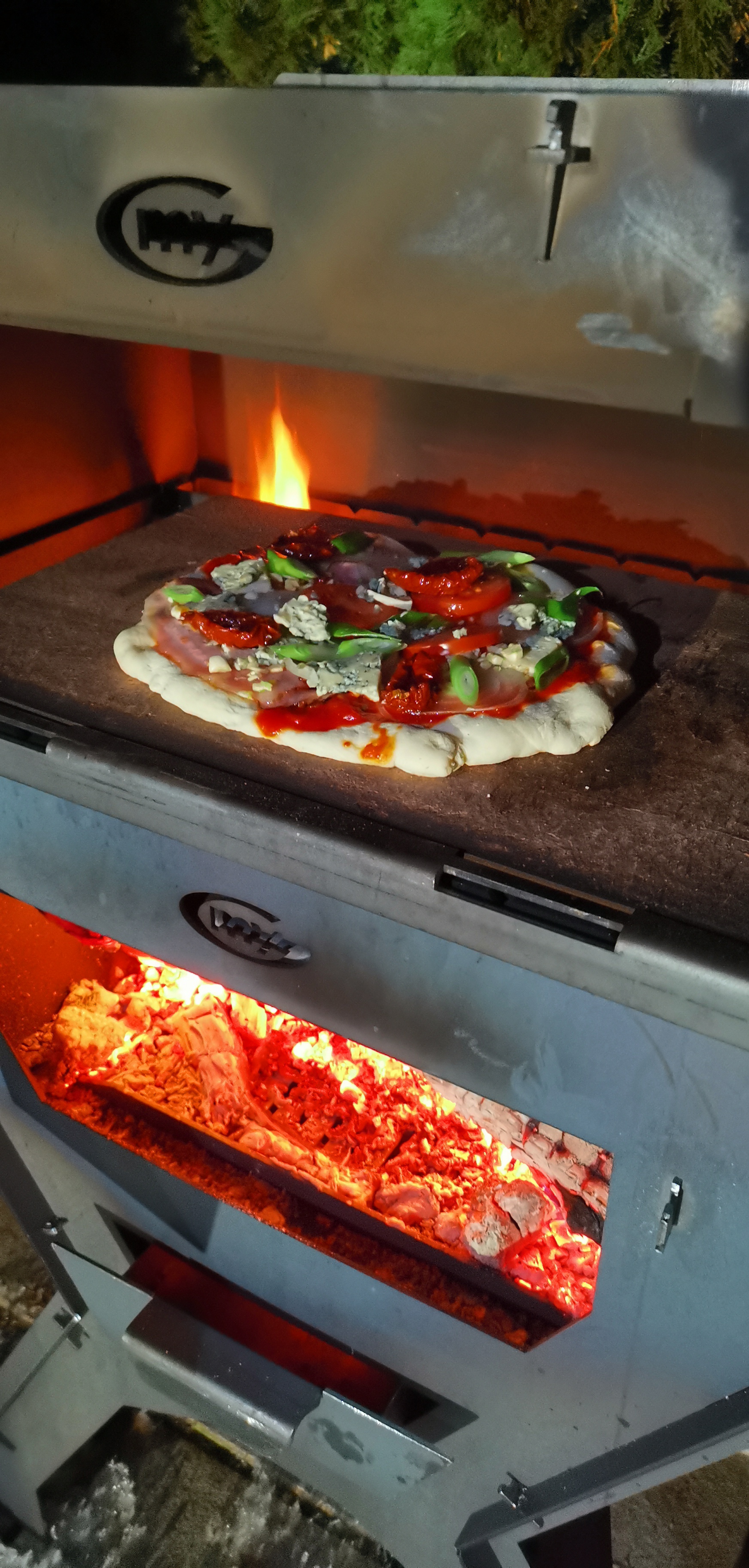 Získáte tím možnost přeměnit Váš PuzzleGrill V2 z multifunkčního grilu na pec a kdykoli zase zpět na gril. Komora pece je vyložena žáruvzdorným šamotem, díky tomu a důmyslným průduchům peče rovnoměrně ze všech stran. Do dvaceti minut máte pec rozpálenou na 400 stupňů, pizza je tak hotova během dvou až tří minut. Díky možnosti regulace přívodu vzduchu popelníkem, případně i dvířky topeniště, můžete teplotu regulovat a využít tak Vaší zahradní pec i pro pomalé pečení.
