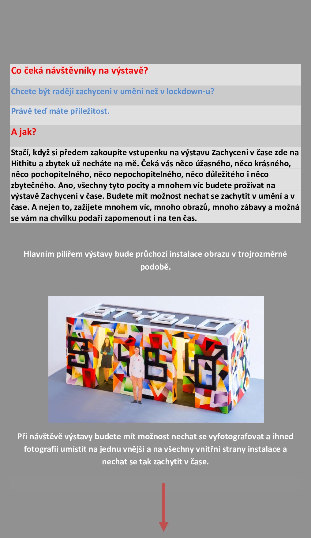 Jednorázové zvýhodněné vstupné pro dvě osoby na výstavu s možností nechat se 1x vyfotografovat na instalaci Zachyceni v čase a být tak zachyceni v čase.