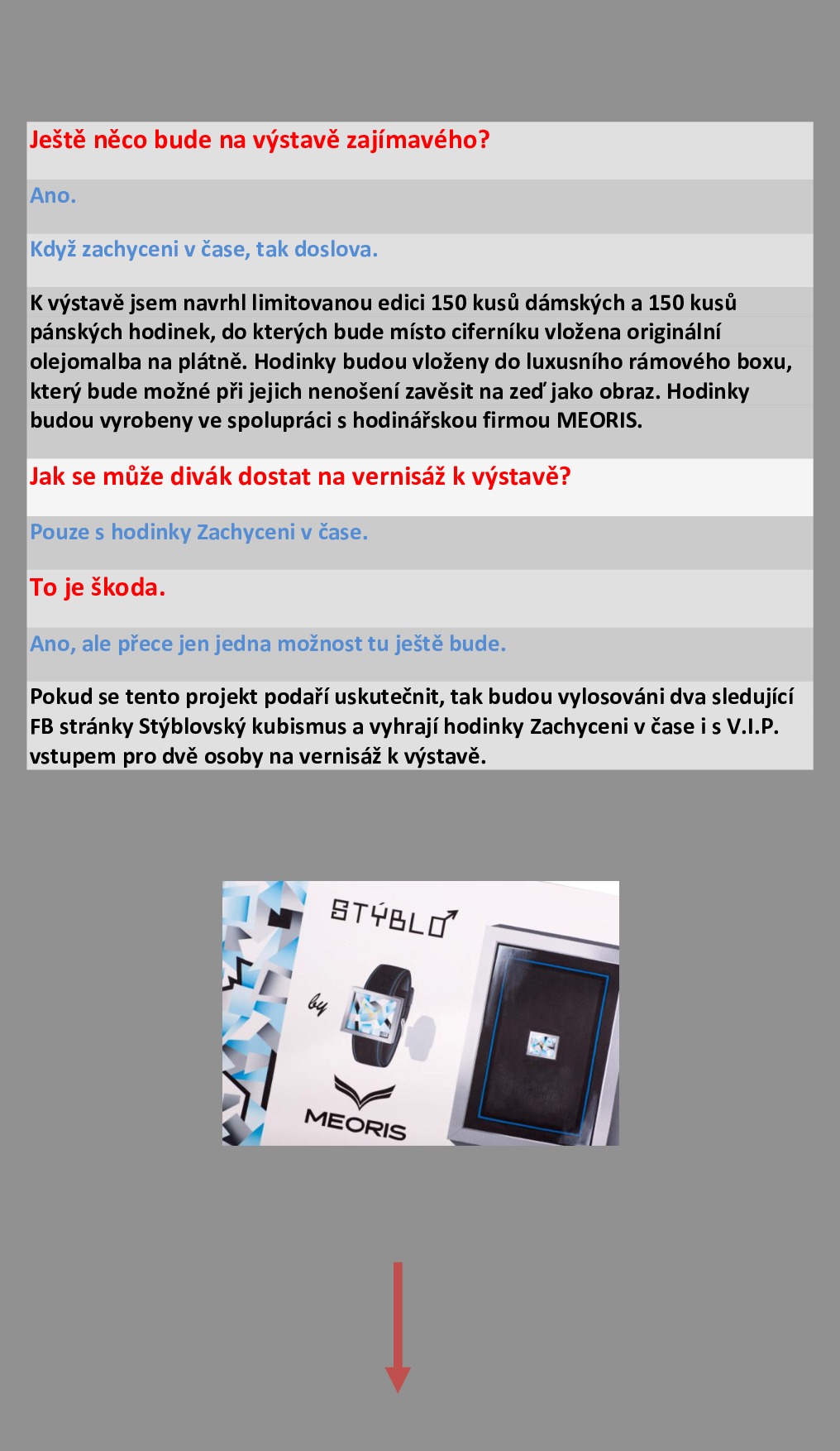 Hodinky budou sloužit jako vstupenka pro dvě osoby na velkolepou vernisáž a jako volná vstupenka pro dvě osoby na výstavu po celou dobu jejího trvání.