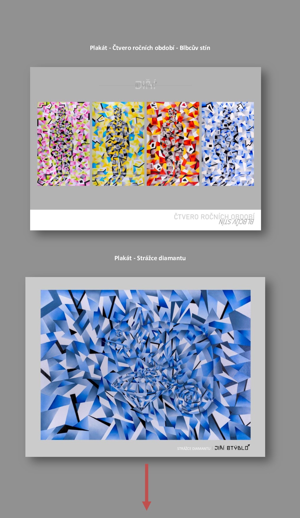 Podepsaný plakát o velikosti A0 s tématem obrazů Čtvero ročních období-Blbcův stín-Jaro-Léto-Podzim-Zima.