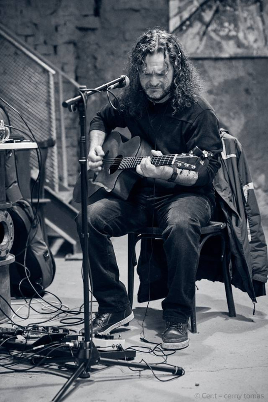 Po letech bouřlivého života rockového muzikanta vyměnil jsem elektrickou kytaru za akustickou a nápoje s vyšším obsahem za ty s nižším (to trošku přeháním..). Jal jsem se vidět svět očima zasněnýma s vírou v dobro a lásku. Akordy linoucí se z mé španělky, prohnané přes looper a několik svěžích krabiček, podpořil jsem verši, které ze mě nad ránem vypadly, abych písněmi z tohoto zrodivšími se, přivodil obecenstvu příjemné pocity a lehký úsměv.