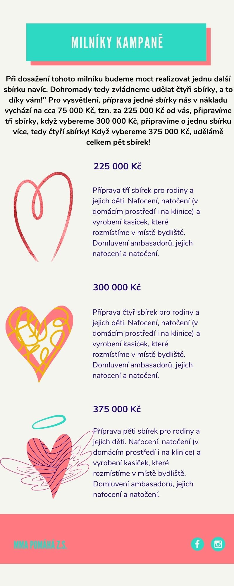 Pokud vybereme cílovou částku, budeme v roce 2021/22 realizovat další sbírky, které pomůžou tam, kde je třeba. Budeme rádi, když nám pomůžeš pomáhat.