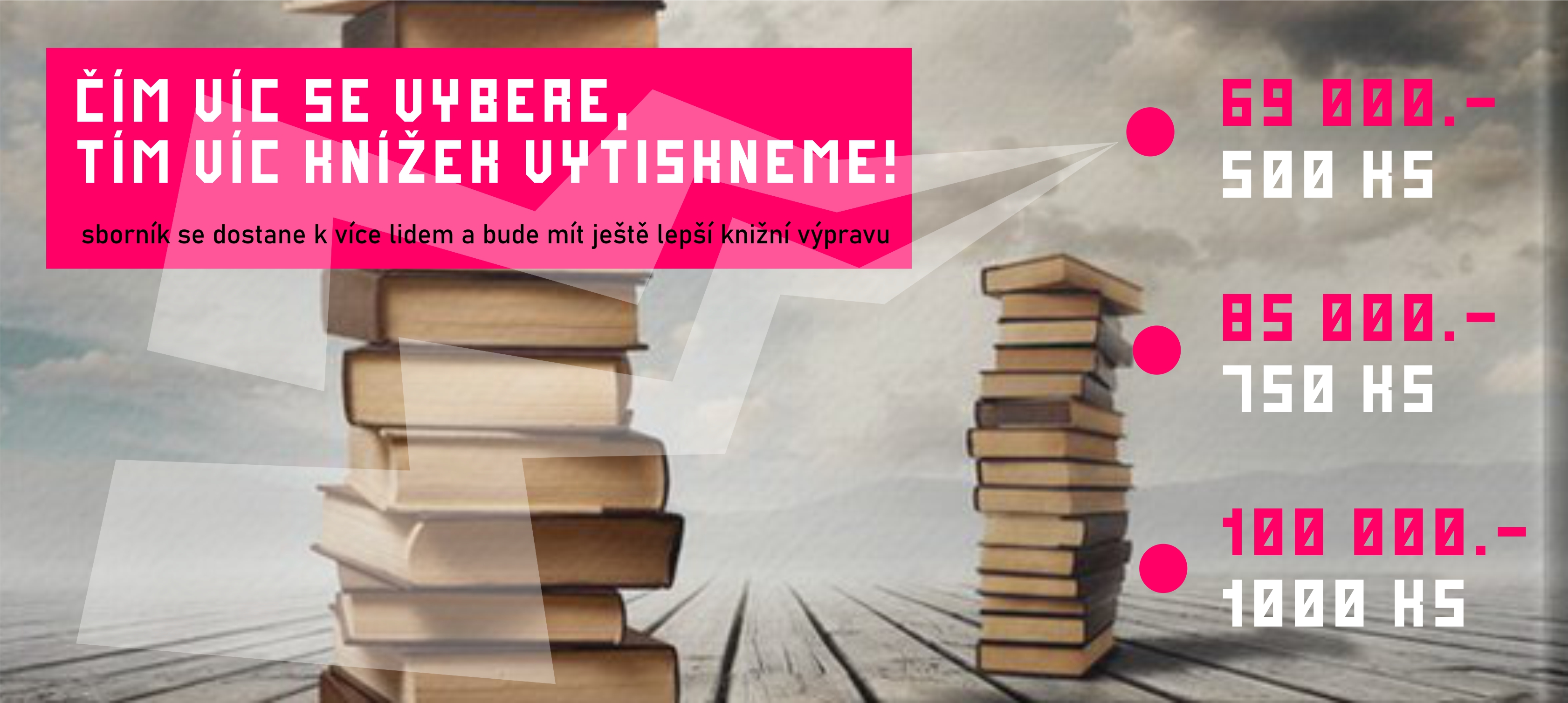 ČÍM VÍC SE VYBERE, TÍM VÍC KNÍŽEK VYTISKNEME! Sborník se tak bude moci dostat k více lidem (zajistíme, aby byl k dispozici na většině našich živých akcí) a také bude mít ještě lepší knižní výpravu.