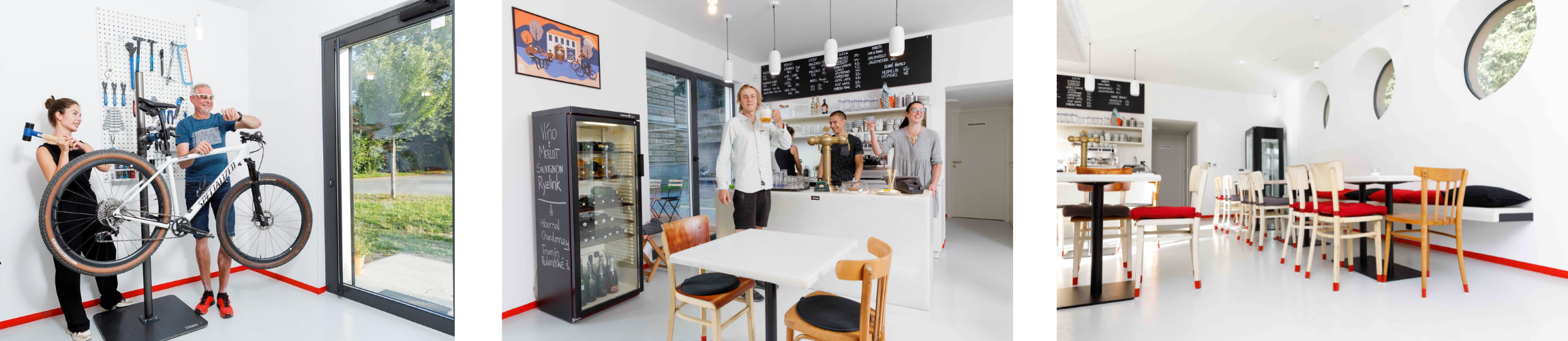 Cyklisté jsou jedna parta! Naším rajónem jsou lesní cesty, polňačky, cyklostezky i silnice, ale po výkonu se chceme potkávat a bavit v místě, kde se cítíme dobře a máme po ruce vše, co my sami i naše kola potřebují. Jsme lidi přátelští, takže ve své společnosti máme rádi i ostatní sportovce a náhodné kolemjdoucí, kteří si užívají život plnými doušky.