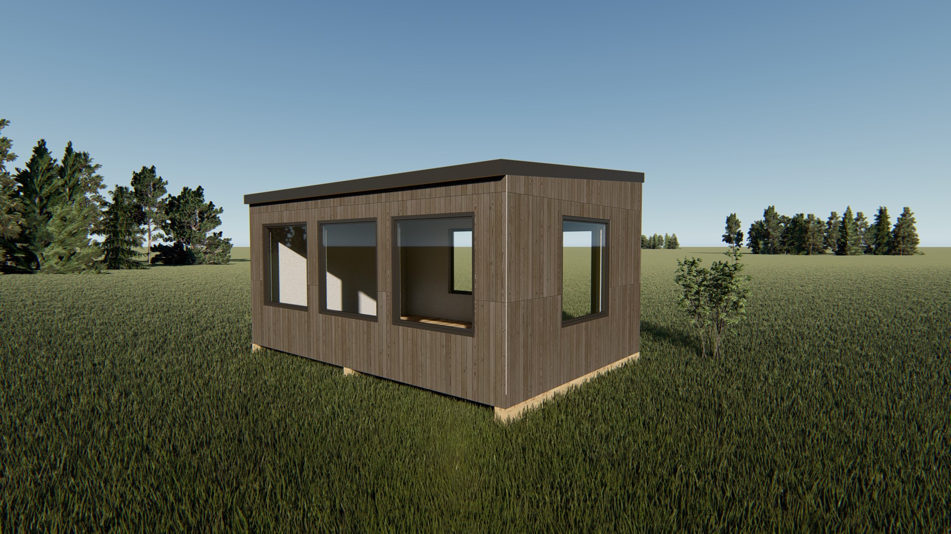 Vizualizace jednoduchého zázemí, ke kterému chceme přidat velkou terasu.