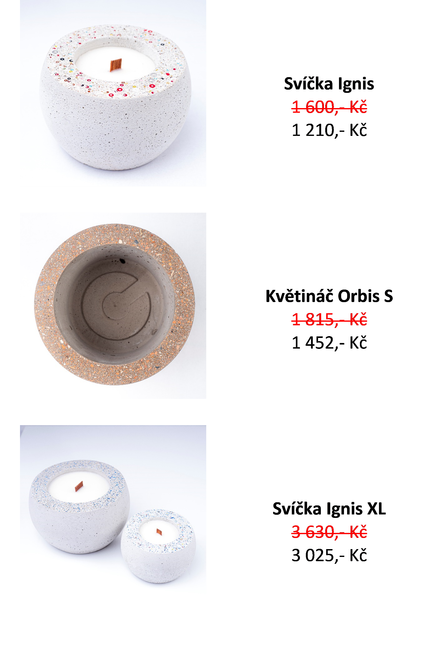 Naším cílem je snížení environmentálních dopadů betonových výrobků a úspora přírodních zdrojů. Například při výrobě jednoho svícnu Candelabrum ušetříme 1,05 kg přírodního kameniva a 0,04 kg CO2 oproti běžnému betonu.