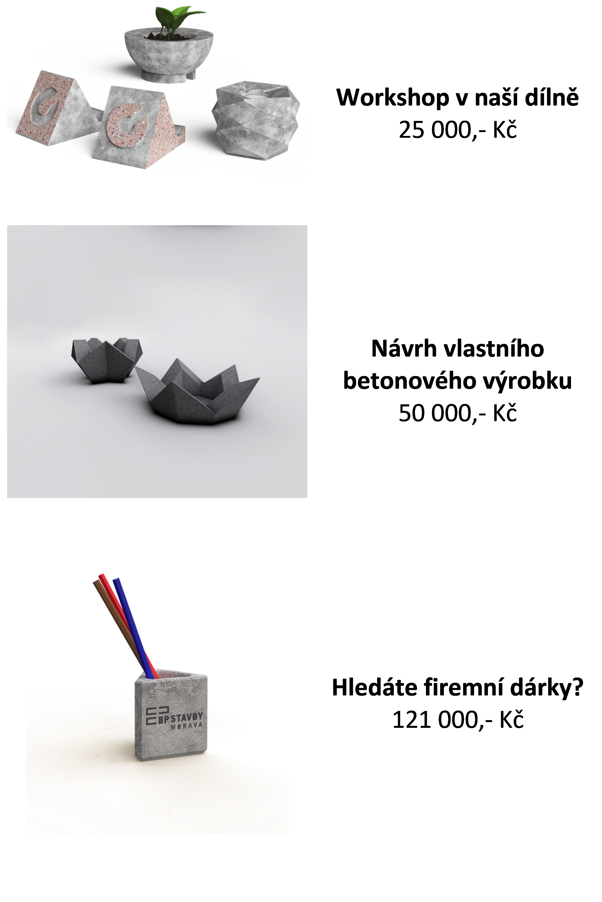 Jsme nadšení betonáři, kteří se nebojí nových věcí a výzev. Měníme zavedený pohled na standardní beton, kdy se snažíme o maximalizaci podílu druhotných surovin v jeho struktuře s minimálním dopadem na užitné vlastnosti produktu. V současné době jako jediní na světě vyrábíme designové interiérové a exteriérové produkty z betonu, kde je přírodní kamenivo nahrazeno recyklovanou stavební a demoliční sutí. Také jako jediní na světě implementujeme luxusní druhotné sklo, které by jinak skončilo na skládce, do designových výrobků z vysokopevnostního betonu.