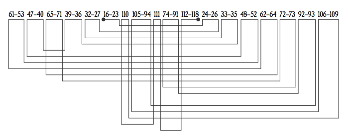 Kniha má nelineární pořadí stran. Přestože číslování stránek bude vypadat jako chyba nebo schválnost, nebude tomu tak ani tak. Pozice stránek v rámci možností budou co nejpřesněji reflektovat polohu dějů, které se v knize odehrávají. Čtenář tedy nebude sledovat hrdinův den pouze četbou, ale bude kopírovat rovněž jeho fyzický pohyb svým vlastním fyzickým pohybem v prostoru knihy. Je to ostatně jediný způsob, jakým lze dát číslování stránek v knihách jakýkoliv smysl.