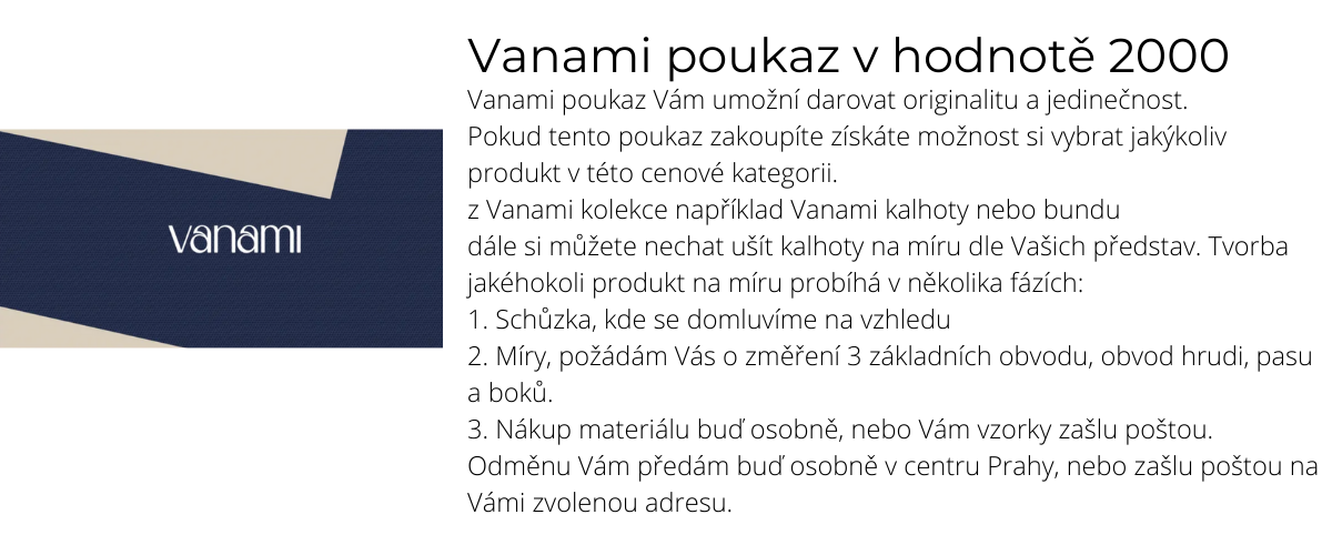 Najdete tu kousky z Vanami kolekce za zvýhodněnou cenu, ale také možnost nechat si ušít například kalhoty nebo halenku na míru.