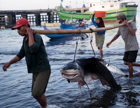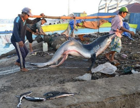 Vesnice Tanjung Luar je známá pro svou obrovskou rybí a především žraločí tržnici. Každý den zemře na tomto místě průměrně 60 žraloků, ročně zhruba 22 tisíc. Každému žraloku jsou uřezány ploutve, které putují do Číny, kde se z nich vaří oblíbená a velmi drahá polévka. Číňané si tak dokazují svůj společenský status, zkrátka, že na takovou polévku mají. Zbytek žraloka nemá pro rybáře velkou cenu, ovšem zpracovat ho musí, maso prodají jako neznámé rybí masíčko do místních warungů, ze žraločích jater se pak vyrábí oleje pro lepší imunitu nebo do kosmetických přípravků. Na tržnici narazíte mimo jiné i na korálové rybičky, mečouny, tuňáky a mnoho dalších mořských druhů, mnoho z nich ohrožených nebo dokonce chráněných jako např. druhy kladivounů a žraloků mako. Pro někoho, kdo miluje oceány, je to jako procházka po bitevním poli. Třeba potápěči vyráží na drahé potápěčské zájezdy, aby jen koutkem oka zahlédli třeba ty kladivouny, mnohdy marně a tady jich leží tolik. Víme, že rybolov je jeden z mála zdrojů obživy místních obyvatel, ovšem zjistili jsme, že místní z lovu žraloků mají opravdu málo a peníze jdou hlavně překupníkům.