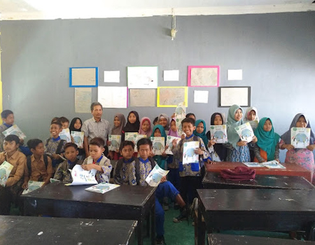 A dárek pro tebe? Pošleme ti naši učebnici v  tištěné podobě, která je zaměřená na ochranu přírody na Lomboku a tvé jméno napíšeme na zeď vedle tabule.
