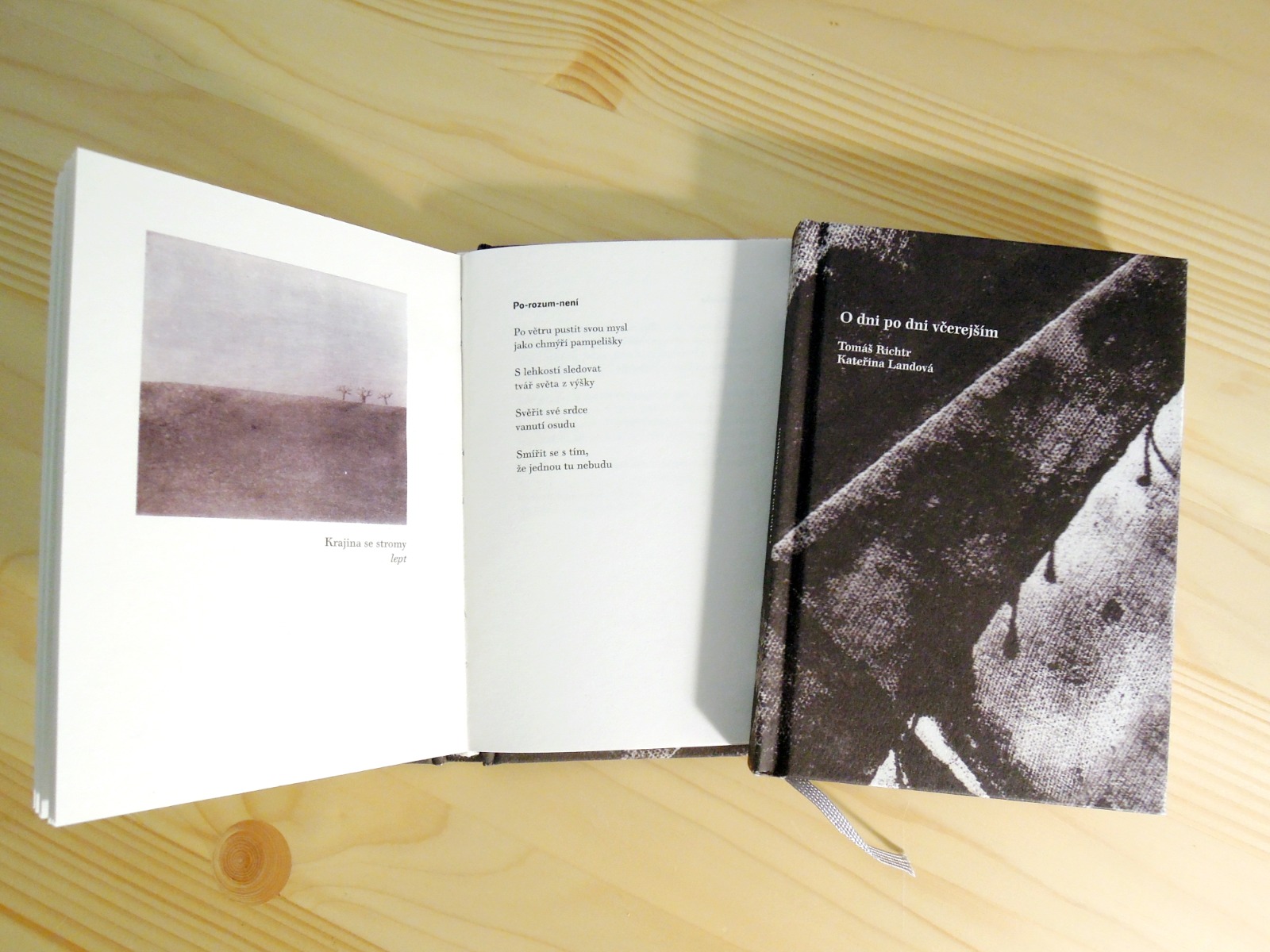 Po knižní prvotině O dni po dni včerejším z roku 2014 budou Převrácené krajiny druhou společnou sbírkou sourozenecké dvojice Tomáše a Katky, která představí básně a převážně akvarelové ilustrace, sepsané a namalované a navzájem sdílené za uplynulých sedm let, kde Tomáš píše a Katka kreslí.