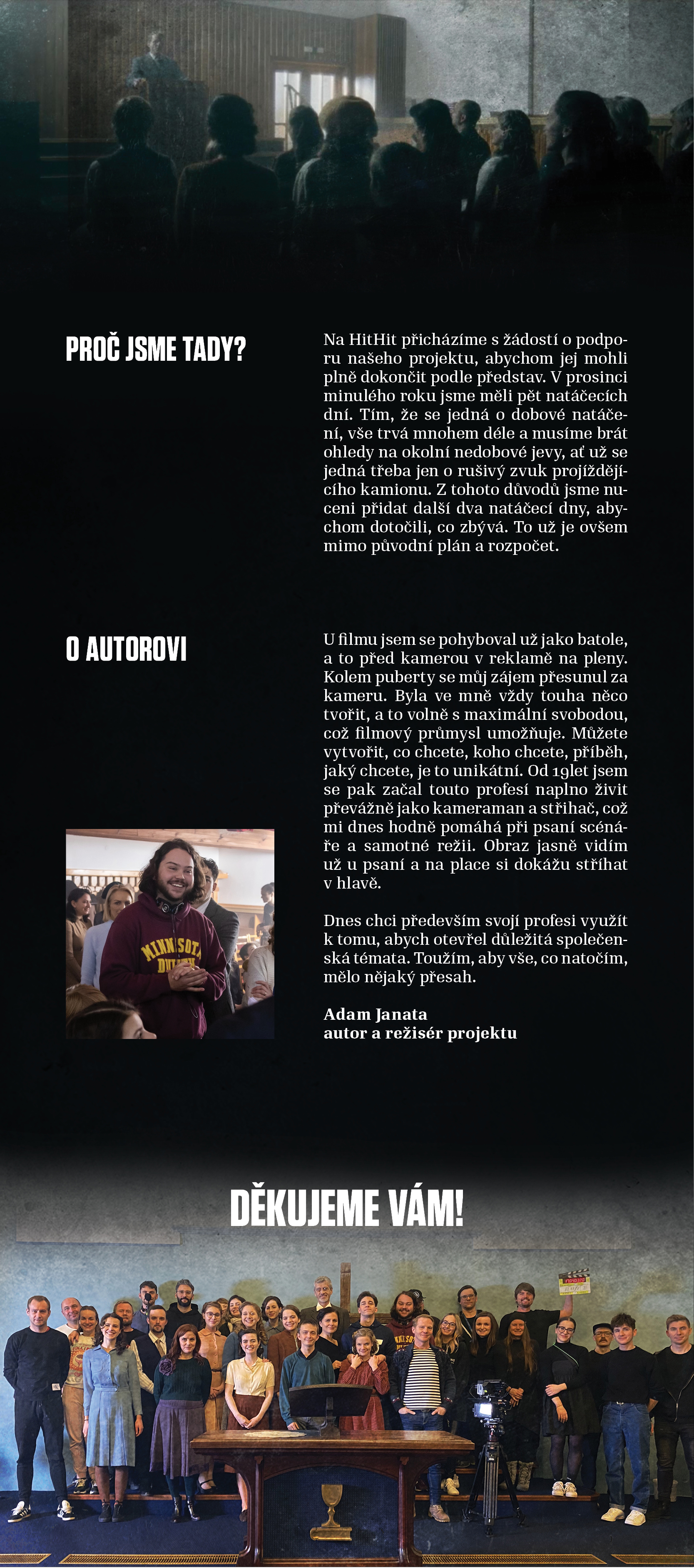 S projektem plánujeme pokračování a vy máte možnost být u toho a to přímo na place s celým štábem a herci.
