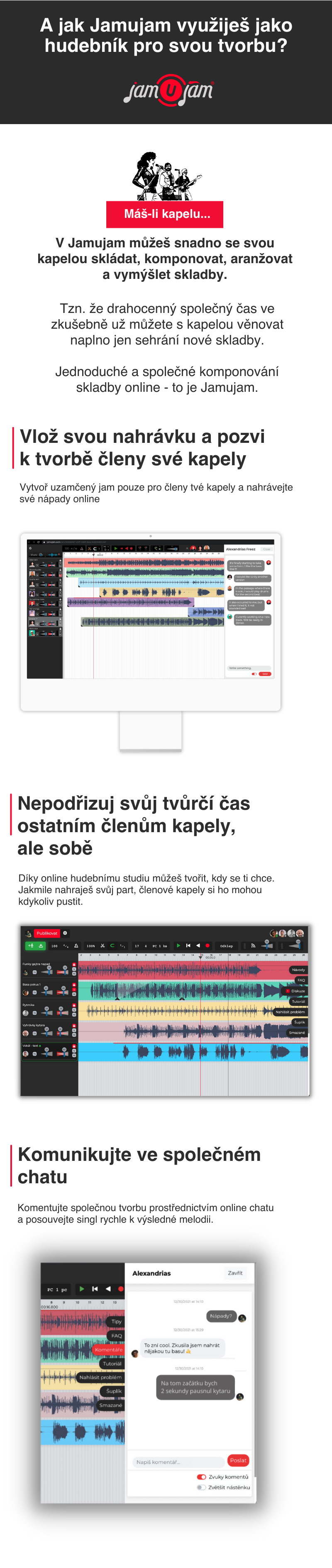 Přispěj na rozvoj Jamujam, kde můžeš nevšedním způsobem tvořit hudbu online s kámošema i ty a k tomu získej super zvuk! V tomhle případě "super zvuk" není jen otřepaná fráze. Slyšel jsi už o značce Soundeus? Jejich příběh začíná také v Česku. Jsou to sluchátka a další audio produkty vyvíjené ve spolupráci s profesionály z komunity hudebníků a audio profesionálů z České republiky. Ostatně, to si můžeš přečíst sám na webu, kde najdeš také podrobnou technickou specifikaci těchto sluchadel a taky mikrofonu, který získáš v této sadě za příspěvek 3500 Kč. Kromě toho, že podpoříš rozvoj Jamujam podpoříš taky rozvoj své tvorby, protože s touhle sadou můžeš začít hudbu pohodlně tvořit i z pohodlí svého pokoje.